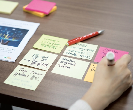 35명이 참석한 이번 비전 워크숍의 토의 주제 중 하나는 ‘2030년 주요 일간지 1면을 장식한 LS ELECTRIC’이었다. 향후 10년간 이어질 LS ELECTRIC 변화와 혁신의 행보에 대한 평가라고 할 수 있다. 해당 주제에 대한 토의는 ‘조별’로 이뤄졌다. 1조 조장을 맡은 박용상 사장을 비롯해 남기원 부사장(2조), 오재석 부사장(3조), 권봉현 전무(4조) 등 LS ELECTRIC의 주요 임원진들은 오랜만에 ‘신입사원’의 위치로 돌아가 각자 의견을 허심탄회하게 밝혔다. 1조와 2조는 ‘졸업 예정자가 가장 선호하는 기업’과 ‘취업준비생이 뽑은 일하고 싶은 기업 1위’라는 신문 타이틀을 뽑아냈다. 기업의 가치와 가능성을 가장 냉정하게 평가할 수 있는 구직자의 인정을 받겠다는 의지의 투영인 셈이다. 3조의 신문기사 제목은 ‘에너지 시장판도, 150여 년 만에 아시아로 대이동’이었으며 4조는 ‘연매출 10조 원 LS ELECTRIC 디지털기업 탈바꿈, 소프트웨어 분야 매출 5조 원 넘어…’를 선정했다. 더욱 실효적인 측면에서 LS ELECTRIC의 성장 방향성을 중시한 결과물이었다.