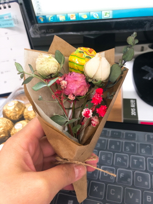 센스 있게 사탕 한 개가 꽂혀있는 꽃다발을 준비해 주셨던 어쏘님^^