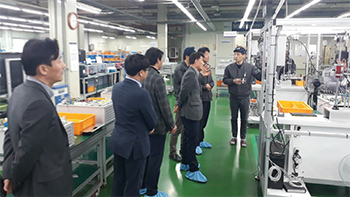 - 우리 회사의 주요 고객사인 포스코케미칼 임직원이 천안사업장을 방문했다. 세종시 전의산업단지에 위치한 포스코케미칼 음극소재사업소 생산설비 인원 14명의 방문은 2차에 걸쳐 진행되었는데, 천안사업장의 자동화 제품에 높은 관심을 보였다. 이들은 PLC·HMI·인버터 제품의 생산 및 검사라인을 꼼꼼하게 둘러본 뒤 제품의 기능에 대한 다양한 질의를 하며 관련 지식을 배우고자 했다. 포스코케미칼 인솔책임자 김석현 Master는 향후 양사의 우호적인 관계가 지속되기를 바란다는 소감을 전했다.