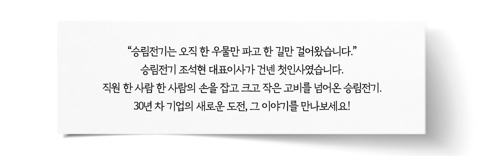 오히려 위기를 기회로 삼아 준비하는 마음으로 승림전기는 토대를 단단히 다지고 있습니다.