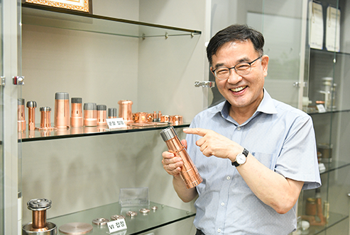 1990년 설립된 절삭가공 전문 회사로, 초고압 차단기 핵심 부품으로 사용하는 전기접점(W-Cu, W-Ag) 및 도체류, 모듈을 생산하고 있습니다. ISO9001(품질경영시스템), ISO14001(환경경영시스템) 인증 및 개폐기용 조작기 특허, 텅스텐-구리 소결합금 제조방법 특허, 차단기용 이종접점 특허 등을 취득했습니다. 2011년 100만불 수출탑을 수상했으며 기술혁신형중소기업(INNO-BIZ), 뿌리기술전문기업으로 선정됐습니다. 2016년 9월, 조석현 대표이사가 취임해 기술과 사람을 아우르며 발전해나가고 있습니다.