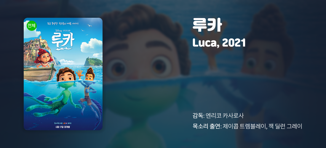 올 여름 개봉한 애니메이션 <루카>도 가족 모두에게 좋은 선택이 될 것입니다. 이탈리아 리비에라의 아름다운 해변 마을에 루카(제이콥 트렘블레이)라는 소년이 살고 있는데요, 이 소년은 물에 닿으면 바다 괴물로 변하고 물 밖에선 인간이 되는 종족이랍니다.(아, 물론 이들은 우리 같은 인간을 육지 괴물이라고 부르죠.) 루카의 엄마는 루카가 어릴 적부터 육지 근처에 가지 말라며 신신당부를 했지만, 호기심 많은 루카는 자칭 ‘인간 세상 전문가’ 알베르토(잭 딜런 그레이)와 함께 육지로의 모험을 감행합니다. 새로운 세상으로의 모험, 그리고 그 속에서 성장하는 아이들의 이야기는 언제나 우리에게 감동과 기쁨을 주기에 충분합니다. 잠시 어린아이의 마음을 장착하고, 눈부신 지중해로 여행을 떠나 보시는 건 어떨까요?