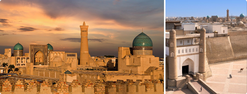 부하라는 약 2,500년 이상의 역사를 가진 도시로 알려져 있으며, 오랜 기간 동안 여러 제국과 칸국의 왕도(수도) 역할을 했습니다. 부하라는 중앙아시아에서 가장 잘 보존된 역사 도시 중 하나로, 구시가지에는 140개가 넘는 역사적 건축물이 남아 있습니다. 대표적인 유적지로는 포이 칼얀(Poi Kalyan) 건축 단지와 칼얀 미나렛(Kalyan Minaret), 아르크 요새(Ark Fortress), 라비하우즈(Lyabi-Hauz) 등이 있습니다. 이러한 독특한 역사적 가치 때문에 부하라 구시가지는 유네스코 세계문화유산으로 지정되어 있습니다. 또한 대부분의 역사 유적들이 가까운 거리에 위치해 있어 걸어서 쉽게 둘러볼 수 있습니다.